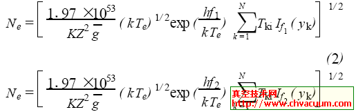 由式(4)可看出, 只要求出不同频率(f1,f2)的相对光强值,便可求得其电子温度,这便是利用二比色法即不同频率下光强求得电子温度的方法。