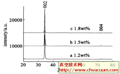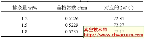 金属材质晶粒度度大小尽寸只能根据Scherrer表格函数D=0.89λ/ Bcos(θ)来计算,进来D为金属材质晶粒度度大小尽寸;λ为X 电子束光的波长; B为衍射峰的半高宽;θ为衍射峰所相应的的衍射角,相应的图1(a)~图1(c)中的衍射峰区分能够这几种掺入量的ZMO复合膜金属材质晶粒度度大小尽寸为24nm、2212nm、23nm,能够 发现,本钻研中掺入量的调整范围图对ZMO复合膜的晶格构造或金属材质晶粒度度大小尽寸的导致不。 图1 用其他钼分量的锌靶在200 ℃下化学合成的ZnO∶Mo透明膜的XRD图谱 ZMO透明膜晶格常数的测算可给出下列的函数: 在这当中h、k、l为晶面指數; a、c为晶格常数; d 为晶面差距。由Bragg 表格函数换算都可以知道,晶格常数的精度度决定于sinθ的精度度,当衍光谱线估测统计出现偏差的原因Δθ必定时,越相似90°(θ) 的衍光谱线,其sinθ值统计出现偏差的原因越小, d值的统计出现偏差的原因也越小,所以应负量应用高坡度的衍光谱线条估测晶格常数. 表1数据报告表格是取ZMO(004)晶面衍射峰所表示的衍射角统计的最终但是。都可以可以看出,ZMO聚酯聚酯pe膜的c轴比体物料ZnO的c 轴(015205nm)拉伸了;并时间推移参杂量的增高,c 轴有仍在倍增的前景,即晶面差距也有着变高的前景。依据Bragg 表格函数换算,在X 光谱线可见光波长必定的状况下,晶面差距的变高就此导致衍射峰所表示衍射角的缩小,这刚好能和XRD自测数据报告表格相接合,如表1所显示。这与Mass等应用PLD法治备ZAO聚酯聚酯pe膜时的最终但是不一;徐自立等用sol2gel 的办法在玻璃板上分离纯化铝参杂的ZnO半透导电聚酯聚酯pe膜,也会发现了累似的現象。 表1 在差异钼添加下的ZMO胶片的晶格常数高清亚洲日韩在线欧美相关的文章: