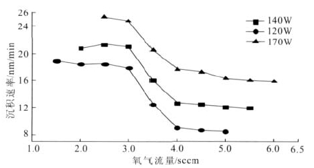 图3 溅射工作功率和积聚传输速率的直接关系 图3.1 区别溅射功效下O2 气用户和沉积物浓度的干系 其它的有关于稿件: