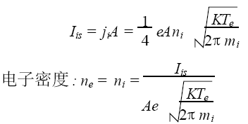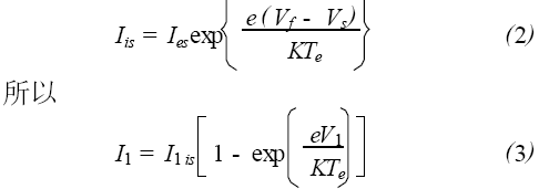 其中, I1is是探针1的饱和离子电流, I 1es是探针2 的饱和电子电流。V1是探针1 相对于悬浮电位Vf 的电位, Vs 是等离子体空间电位。由悬浮电位的定义式得
