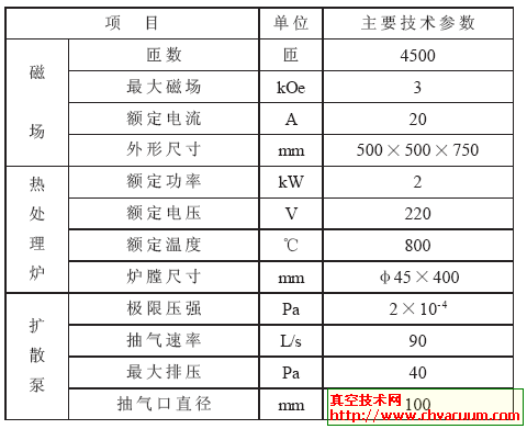 高真空磁场热处理装置的组成及主要技术性能参数