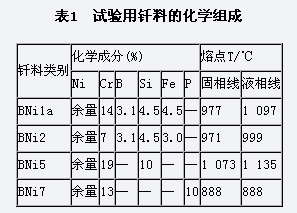 对接焊缝并选择,钎料的化工组成的列于表1.