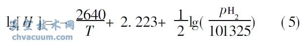 式中, [ H ] 为铜液中氢的溶解度, 单位为100 g 金属中溶解的气体在标况( 101325 Pa, 273 K) 下的体积,即mL/ 100g; p H2为氢的平衡分压; T 为铜液的温度。当T= 1500 K, 取氢分压p H2= 5 * 10- 2 Pa, 计算可得氢的平衡浓度是2.05 * 10- 3 ml/ 100 g ( 0.184 * 10-2 ug/g, 氢在标况下的密度为0.0899 g/L ) 。