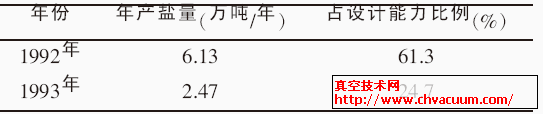 张家坝制盐化工机械厂热压盐生产加工4 年多, 显示器产盐仅为19.6 万吨级级, 只占设汁技能(10 万吨级级)的47%,大大的降到设汁技能。以产销量比较高的1992 年和产销量最便宜的1993 年为例子,其生生产产量销量占设汁技能的比列下述。