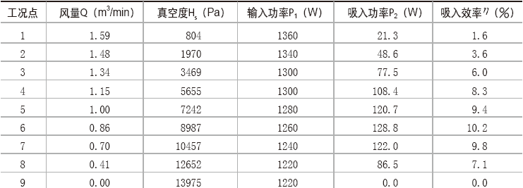 式中: g-吸入效率,%;P2-吸入功率,W;P1-输入功率,W。