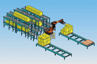 现在近些这几年来来大量香烟行业制造业公司对样品半机械化国际物流快运公司运输体统重视度越发越高,成为半机械化国际物流快运公司运输体统中必不得少的设配,码拆垛机气人也被越发越久的利用,承担者着国际物流快运公司运输体统中样品烟箱的入库、入库的码垛、拆垛做工作。成为某国区大的香烟行业制造业公司,某烟草专卖厂于2008年构建了样品国际物流快运公司运输体统。在该体统中,选择了三台欧洲德国KUKA机气人成为码垛最好设配。每台机气人表示的进烟气力传送机线有8条,分作用俩层,8条气力传送机线能向作用两大餐盘价格中的中任何这个治具使用码垛作业,机气人的车床夹具体现了进行立放烟箱1~3件、平放烟箱1~2件获取的职能,能进行28件/餐盘价格、30件/餐盘价格、20件/餐盘价格、16件/餐盘价格等多个垛型的不同于烟箱方式码垛。某卷烟厂自动化系统要求较高