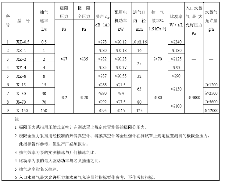 泵的主要性能参数应不符合表1 中规定。 表 1 泵的最基本性能指标更多真空技术标准请查看:真空技术标准汇编