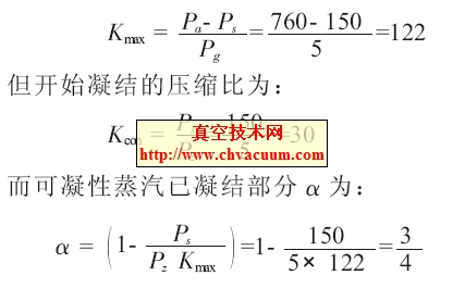 例:从新鲜空气中抽除水过热蒸汽,Pg=5(×133 Pa),Pz = 5(×133 Pa)(从图3 查得在泵温60℃时,Ps = 150(×133 Pa)