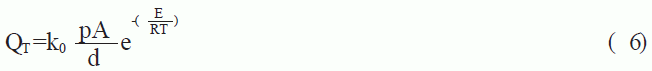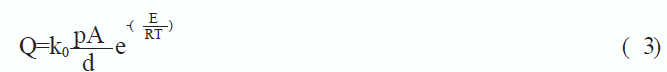 式中Q 为漏孔漏率, Pa·m3/s; K 为渗透系数, Pa·m3/( s·cm2·Pa·mm- 1) ; A 为渗透元件表面积, cm2; p 为渗透元件两侧的渗透气体的分压差, Pa; d 为壁厚, mm。又