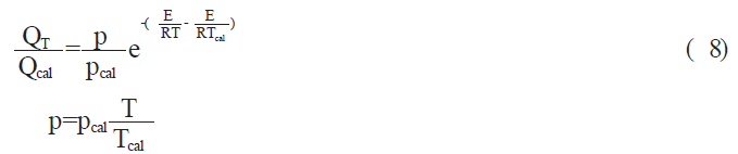 由于石英材料的渗透系数与温度成指数函数关系, 因此渗氦型真空漏孔对温度非常敏感, 在使用时需要对漏孔校准值进行温度修正。通过对一支渗氦型真空漏孔在16~40 ℃温度范围内的漏率校准, 给出了漏率随温度变化的2 种修正方法———指数修正法和线性修正法, 以及2 种方法的修正结果。