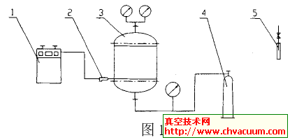 1- 氦质谱仪; 2- 吸枪;3- 被检件;4- 氦气源;5- 正压校准漏孔
