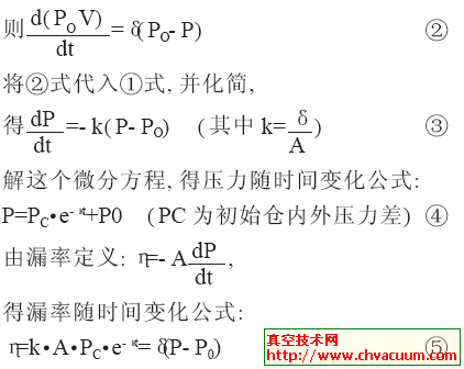 其中d( POV)/dt为单位时间漏入进真空仓内气体多少的量度, 可认为它与仓内外的压强差成正比, 假设这一比例常数为δ,