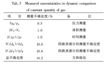 表3 定量气体动态比较法的测量不确定度
