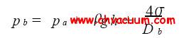若测量时气泡位于液面上方, 则气泡内的压力Pb 为大气压力Pa 和液体表面张力R 引起的压力4R/Db之和, 即