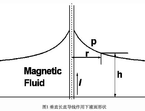 图1下图为立式长直绝缘线效应下磁铁流体动力液面的样子。