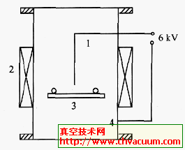 离子阱的结构原理如图21所示,一般将离子阱安装在油封机械真空泵的入口管路上。离子阱是利用冷阴极磁场约束气体放电的原理,在一个水冷圆柱状阴极筒的中心插入一根棒状阳极(Ua=3kV),由一环状永久磁铁提供一个轴向磁场。离子阱工作在10~10-2Pa压力范围内,如果放电强度足够大,当油蒸气分子穿过放电空间时,将被电子和离子轰击打成碎片。然后在电极表面上聚合生成高分子量的碳氢固态膜。