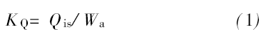 式中, KQ 为泵在一定入口压力下的单位功率抽气量, 单位为m3/ ( kW.h) ; Qis为该入口压力时泵入口处的气量, 单位为m3/ h; Wa 为该入口压力时的轴功率, 单位为kW。