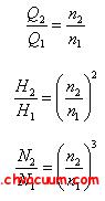 当液体粘度不大,泵的效率不变时,泵的流量、压头、轴功率与转速可近似用比例定律计算,即