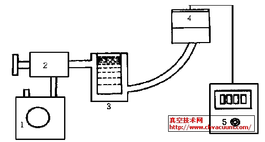 1、被测的容积真空泵 2、阀门 3、冷阱 4、薄膜真空计规管 5、薄膜真空计显示仪表