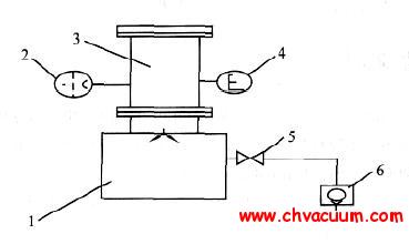 分子增压泵抽速测试采用滴管流量计法如图3进行测试, 压力范围从100 Pa 到10- 2 Pa。