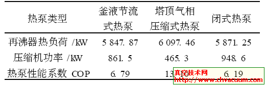 (1) 3类热泵的能耗大小依次是:闭式热泵>釜液节流式>塔顶气相压缩式。