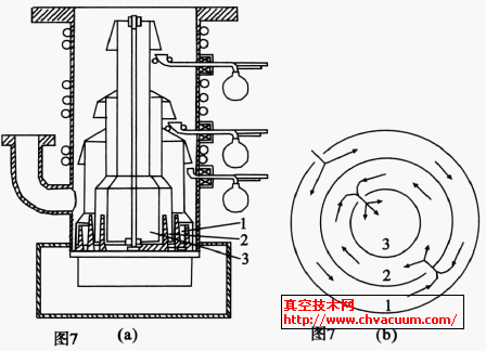 传播泵真空室抽气装置在大型有特殊要求的真空室里,可以采用多步程序进行粗抽:首先,可通过一个较小直径的孔或旁路管道对真空室进行粗抽。该小孔或旁路支管可限制气流的流速并防止紊流搅起真空室基板上的粒子。这些粒子会静电附着在绝缘衬底上。其次,当真空室内的压力降到较低值时,再打开主粗抽阀门,也可以在粗抽管路上设置节流阀,阀板由小到大逐渐开启。第三,如果真空系统中采用罗茨泵,可以将泵旁路或让它空转,直到其入口和出口之间的压差降低到罗茨泵安全工作的数值,譬如1000Pa,才开始将罗茨泵与前级机械泵进行串联抽气,这些功能可采用简单的压力传感器来执行。真空室粗抽达到的压力不应低于15Pa,到此压力后应关闭粗抽阀,并经一段延时之后打开高真空阀。一般不用粗抽泵去抽压力低于15 Pa的大型系统,否则会引起严重的机械泵油返流。