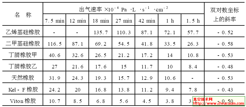 表1 橡胶的出气速率