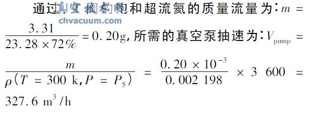 真空泵是获得超流氦的关键设备,超流氦低温循当超流氦的质量流量小于20 g /s 时,常采用室温泵作为超流氦的流动动力,而当超流氦的质量流量超过100 g /s 时,通常采用低温压缩机构成的超流氦低温循环。本设计选用室温泵,即预冷换热器中出来的氦气通过加热装置,加热到常温( 300 K) 后,再经过室温泵将其抽出。HeⅡ的冷却能力和真空泵的抽速有关,抽速越快则超流氦可以提供的制冷量越大。一般来讲,真空泵的抽速越大,则相应的成本也会增加。为了降低真空泵组的成本,在满足系统真空度的条件下,对于该低温系统可以通过降低氦气流量来实现该目标。
