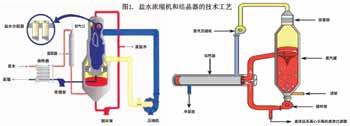 当盐水浓度超过250,000 ppm TDS时,在高压下将盐水从蒸发器泵送到一台强制循环蒸发器内。盐水被释放到一个容器内,在此处它所受的压力减小了,剩余的水汽化了,盐分结晶了。这时的盐仍然稍有一点儿潮湿,但是已经符合EPA固体处置标准。接着在垃圾填埋场处理由此得到的盐饼,它们只占原始废液的一小部分。有些蒸发工艺设备安装在卡车上,并被运至油井处进行工作。然后,使用离心泵来抽走土制收集池或者存储罐内的回流液,送至蒸发器。