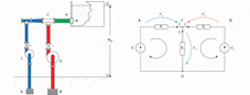 如图1所示,并联泵系统包括两台并联的泵、管道以及进水罐和出水罐。 图中还可以看到同一个泵送系统的电路回路。在电路中,电压电源表示泵,电阻器表示管路中由于摩擦损失的压头。