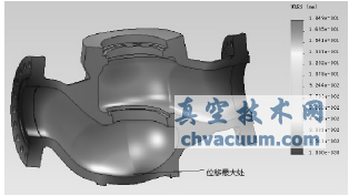 从图1就可以看出来,极限刚度的最低值为171.49MPa,展现在上面主腔和管腔毗邻处,超过等于妥协刚度253.1MPa,健康稳定指数公式约为1.48,此最低值超过等于阀体来设计健康稳定指数公式1.5,适用条件。