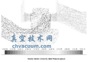 图4 未加节流孔板中心对称面压力差区域失量图