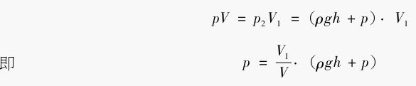 当水银面停在如图2所示的位置时,测量毛细管内的气体体积为V1,压力为 p2,而比较毛细管内压力仍为p。测量毛细管和比较毛细管液面高度差为h = h1-h 2,则测量毛细管内的压力p2= ρgh + p。根据波义耳定律可得