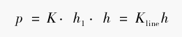 式中K line为直线刻度真空计常数,单位为Pam-1。所以p与水银液面高度差h成直线关系,故称为直线刻度法。在刻度过程中,h1可选其等于任意值,选定一个值(一条基准线)就可有一对应的刻度尺。