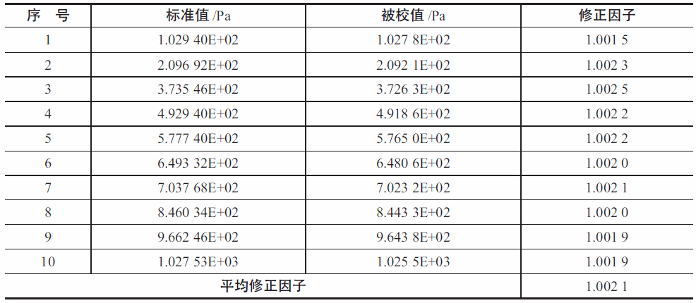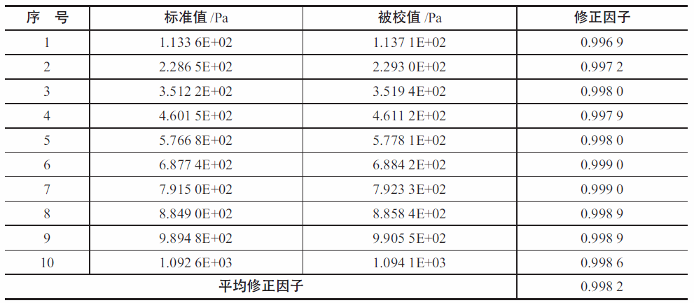 传输对比法是用高6级在线校正原则和被调查的原则标定(检定)统一台维持性好的传输原则或在线校正用品,其值分辨是y0 和y,应满意式(1) 式中y 为被审核规格单位的自校最终;y0 为量测规格单位的自校最终;U 为被审核规格单位的寻址不肯定度;uc 为被审核规格单位的制成规格单位不肯定度。 高3级在量测规则采用高精细气缸压力值计规则传动传动装置,其在量测条件为(1×102~1×104)Pa,加密不确认度U 为0.20%~0.01%(k=2);被核对规则静态变量澎涨法高压气规则传动传动装置在量测条件为(1×10-4~1×105)Pa,加密不确认度U为0.8%(k=2)。电容薄膜真空计具有优良的稳定性和重复性,常被用作真空标准之间的传递标准。这里传递标准选用生产的FS1.33 kPa 电容薄膜真空计,其测量范围为(1~1×103)Pa。在(1×102~1×103)Pa 范围,分别用高精密活塞压力计标准装置和静态膨胀法真空标准装置对FS1.33 kPa电容薄膜真空计校准,校准数据见表1 和表2。