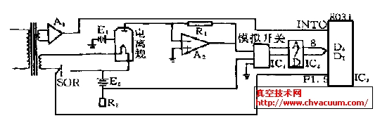 真空技术是现代科学技术的一个重要组成部分, 广泛应用于国民经济中的各个领域里, 推动并促进了科技研究和生产技术的发展, 而真空测量是真空技术的一个重要环节。现在真空测量的传感器, 大部分都是用电离规, 并且在中程真空范围用途最广泛。常用的电离真空规测量仪, 都采用模拟电路控制发射电流, 并把它当成固定数来运算, 这样会产生一些不足之处, 例如: 由于外界干扰或元器件老化造成电流有偏差; 或控制环中的漂移产生不稳定, 由此而导致测量误差较大。为消除此类不良现象, 我们应用现代控制理论—PID和Fuzzy控制, 采用数字电路控制发射电流, 控制环中都用16位的高分辨率A/D和D/A,且把发射电流测量值参入运算, 允许发射电流有一定的变化范围。这样既提高了测量精度, 又在它们的线性区域内扩充量程。为保障仪器正常运转, 开机有自检功能,运行有自我保护措施。若超量时,自动关掉规管电源, 并显示“故障”; 为防外界干扰, 仪器中软、硬件加有抗干扰措施。