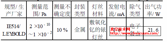 工作操作系统主要由、抽气单位、经济压力检测的单位或者烘烤单位4 区域组合,远离结构类型见图1。真空室为ª0.25m 的柱形容器,主体由极高真空(XHV)校准室(10)和抽气室(7)组成,采用真空熔炼的SUS316L 不锈钢制作,内表面先进行电抛光处理,然后进行严格的超高真空清洗工艺处理,安装前再将其放入真空高温炉中烘烤除气。XHV 校准室与抽气室之间设计了限流小孔(9), 小孔直径为0.033m。抽气单元由MAG2200 CF250 磁悬浮涡轮分子泵(4)、TW70H63CF 分子泵(2)、Ecodry干泵(1)以及2个CapaciTorr-B1300-2 非蒸散型吸气剂泵(5)和(12)组成。压力测量单元主要由2 个热阴极电离规和1 个四极质谱计组成。2 个热阴极电离规(14、8) 分别安装在XHV 校准室和抽气室上。热阴极电离规的参数见表1。四极质谱计QMS200(11)连接在XHV校准室上,用于残余气体分析。烘烤单元由真空容器烘烤套、温度控制与监测系统两部分组成。