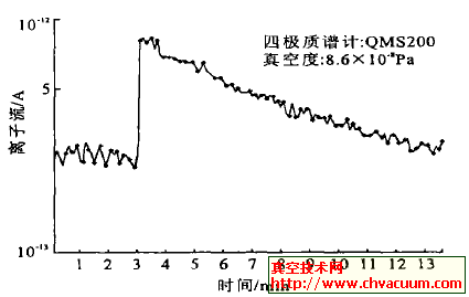 图1 负压容器等有漏气的的残留物有机废气气体谱图 在最高真空泵模式检漏时,利用仿真模拟谱扫描仪扫描仪扫描仪扫描措施扫描仪扫描仪扫描仪扫描稳定度气物谱图,见图2。仅从安全性能数28(判定是N2) 的谱峰很高来评断, 判定有漏, 但無法表述为这些不有Ar峰, 后用示漏气物检漏, 也不能遇到漏孔。 阐述判定, 会因为检漏用的质谱计亚铁离子源不能基本拆洗彻底而所含必然量的碳(利用钨灯丝时也有含碳的问題) , 在工作中温湿度下, 除N2和惰性气物外, 碳近乎能与每个气物发生的作用。如, 碳与O2进行CO和多量的CO2, 与H2进行CH4 等碳氢类化合物。实际的上图2中安全性能数28 处的谱峰的具体重大贡献是CO,并不再是N2, 安全性能数16(CH4)和44(CO2)处有很高的谱峰也证实了因此有碳造成的污染的问題。 图2 有碳氢类化合物的的残留物气味谱图 示漏实验室气体静态检漏图3是使用示漏气体动态检漏的谱图, 检漏气体为He。可以看到,当喷枪喷到有漏孔的地方时, 四极质谱计的He离子流在一个测量周期内(设定测量周期为6s)上升了3倍, 证明此处有漏。当发现漏孔时喷枪即停止喷气, 漏孔周围的He浓度没有继续升高。随着真空容器内He被抽走, 其离子流也缓慢下降,10min后达到本底。此前, 我们将一台标称最小可检测漏率为5×10-12 Pa·m3/s 的氦质谱检漏仪接在抽气系统的前级, 对同一漏孔进行检漏, 但检漏仪并未指示出有漏。可见, 用四极质谱计检漏非常灵敏和快速, 更适用于极高真空系统。