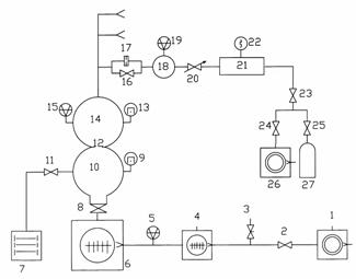 式中C1为限流小孔(17)的分子流流导;C2为限流小孔(12)的分子流流导;P1、P2分别为上游室(18)和校准室(14)中气体的压力。