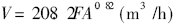 式中,V为进气量,m3/h;Q为来自五湖四海蓝色火焰的投入能量,W(其值详情表1);A为玻璃钢罐润滑大小(wetted surface),m2;F为环镜标准值,见表3;L为储液在泄放工作各种压力及工作工作温度下的水汽加热汽化热,kJ/kg;T为泄放水汽加热的工作工作温度,K,通常情况取储液在泄放工作各种压力下的凝固点;M为水汽加热的团伙量。